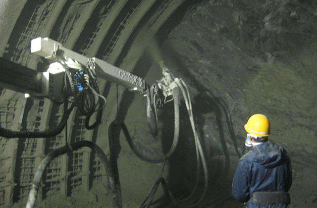 混凝土濕噴臺車采用工程車底盤,機械手動作靈活,施工范圍大,速凝劑用量與混凝土方量自動匹配,減少了速凝劑消耗,噴射速度快,每小時可噴射30立方米的混凝土,噴射混凝土密實度、強度高,大大減輕了工人的勞動強度,節省了施工成本、降低了機旁和噴嘴外的粉塵濃度,消除了對施工工人健康的危害。